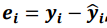 $\hat{y}$, e의 산점도를 나타낸 것입니다.