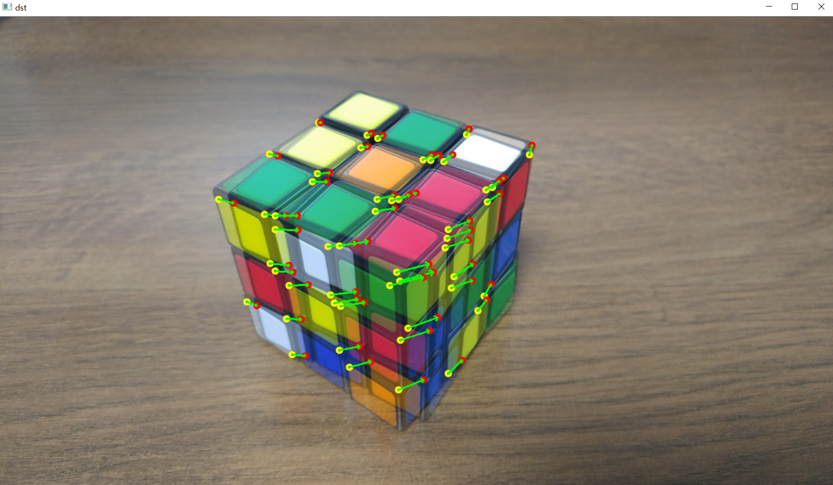 cv2.arrowedLine(dst, tuple(pt1[i, 0]), tuple(pt2[i, 0]), (0, 255, 0), 2)