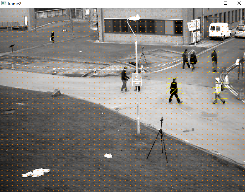 Goal In this chapter, We will understand the concepts of optical flow and its estimation using Lucas-Kanade method. We will use functions like cv.calcOpticalFlowPyrLK() to track feature points in a video. We will create a dense optical flow field using the