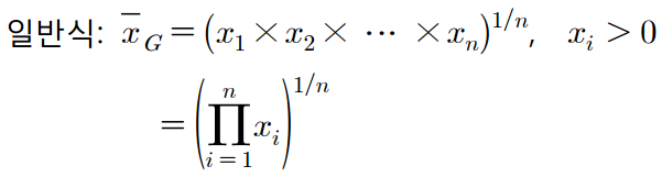 기하평균을 식으로 나타내면 다음과 같습니다.