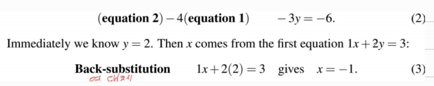 n이 매우 큰 방정식을 풀기 위해서는 4장에서 배우는 cramer's rule이 효과적이긴 하지만 1장에서는 Gaussian Elimination(가우스 소거법)이 제일 좋은 방법입니다.