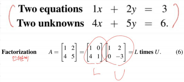 Ax = b에서 A를 LU로 분해하여 나타낼 수 있습니다.