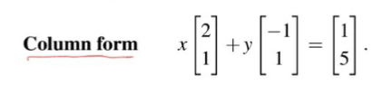 미지수 x와 y는 열 벡터(column vectors)과 곱해집니다.