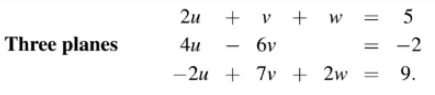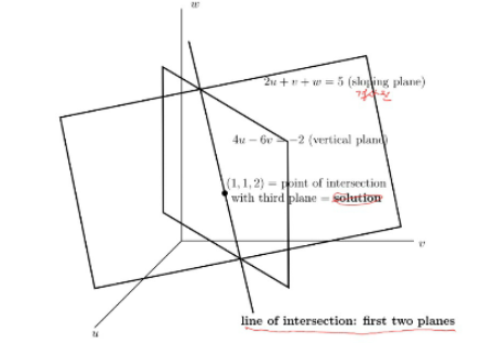 n개의 미지의 방정식에는 row picture에서 n개의 평면이 있습니다.