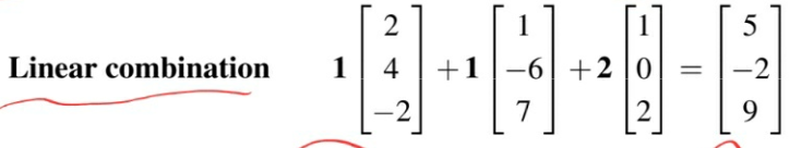 벡터의 곱셈과 덧셈의 결과를 선형 결합(linear combination)이라고 부릅니다.