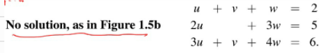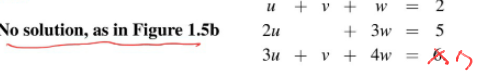 2u+v+w=5와 4u+2v+2w=11는 일치하지 않습니다.(inconsistent)