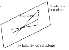 b가 3개의 열들과 동일한 평면에 놓여져 있을 때 해는 무수히 많게 됩니다.
