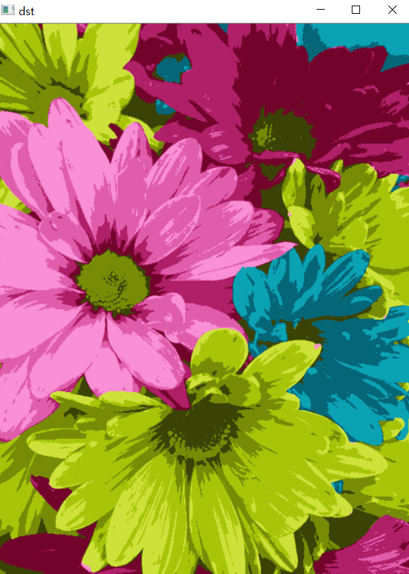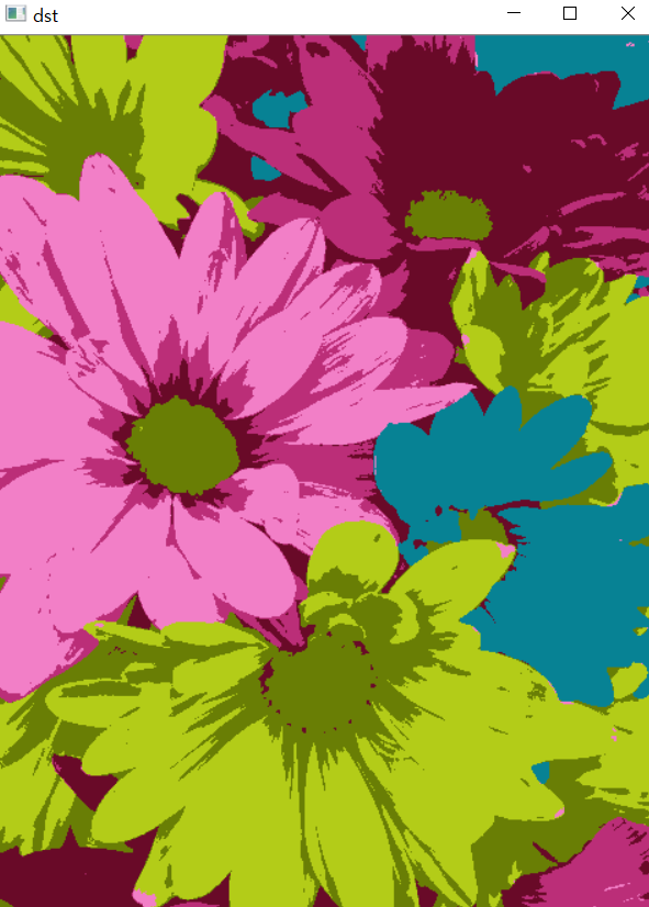 dst = center[label.flatten()] # 각 픽셀을 K개 군집 중심 색상으로 치환