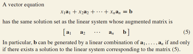 vector equation과 augmented matrix는 same solution set을 갖고 있습니다.