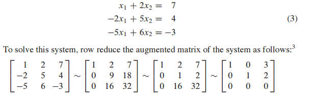 이제 이 augmented matrix에 row reduction을 이용해 reduced echelon form을 얻고 solution을 도출할 수 있습니다.