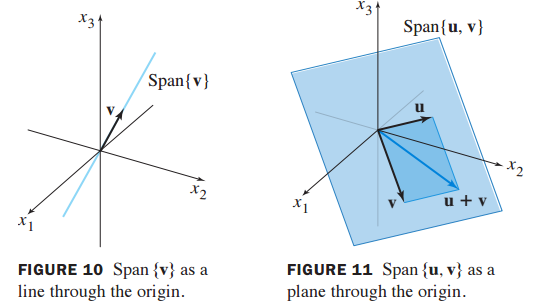 11. 3차원 실수 공간에서 Span{v}와 Span{u,v}의 기하학적 표현
