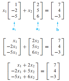 $a_1, a_2, b$가 주어졌을 때 $a_1, a_2$의 선형 결합(linear combination)으로 b를 표현할 수 있습니다.