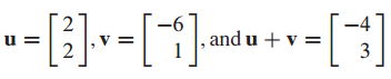 2차원 실수체계 공간에서 두 개의 벡터가 주어졌을 때 덧셈을 할 수 있습니다.