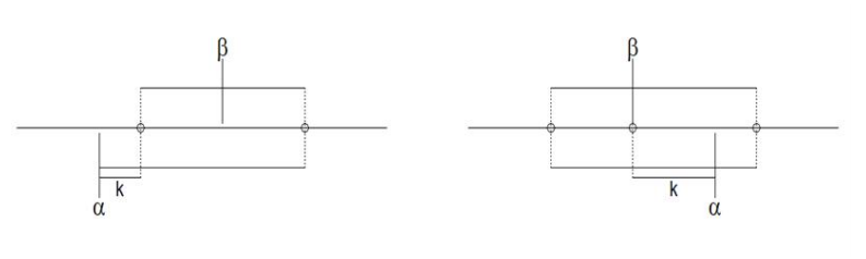 왼쪽 그림을 보면 자료가 2개 있을 때 $L_1$($a$) = $L_1$($b$) + 2$k$가 되어 $L_1$($b$)가 $L$($a$)보다 작은 것을 알 수 있습니다. 이를 일반화하면 표본크기가 짝수이면 $a$가 중간에 있는 두 값의 사이에 있어야 $L_1$($a$)가 최소가 됩니다.