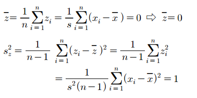 표준화 과정을 거치면 표준화점수의 표본평균은 0 이되고 표본분산은 1이 됩니다.