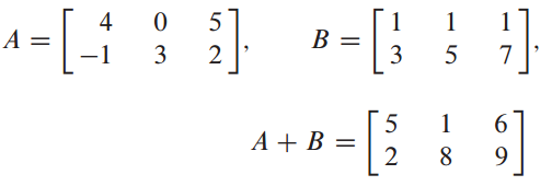 같은 사이즈 행렬 A와 B가 있으면 행렬 덧셈을 할 수 있습니다.
