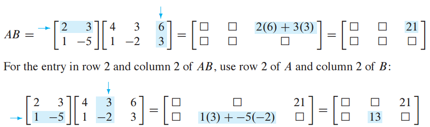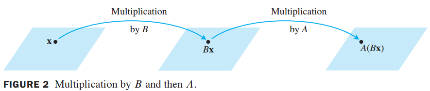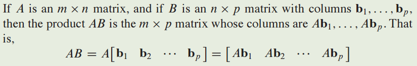 m X n matirx A와 n X p matrix B를 곱하면 m X p matrix AB를 생성합니다.