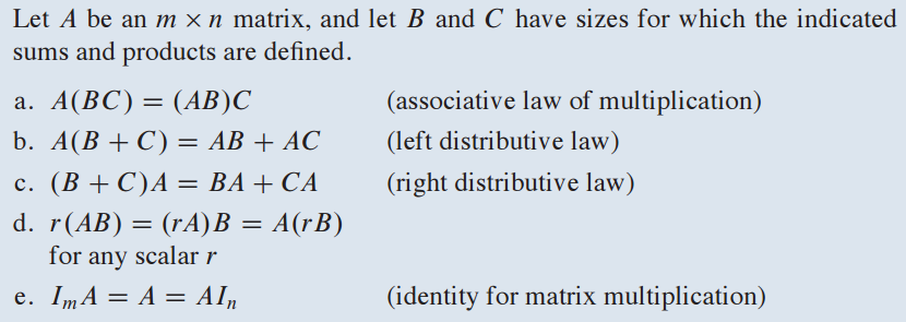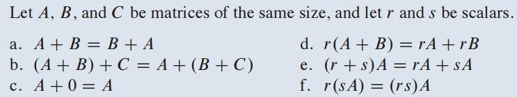 Matrix A, B, C 가 있고 Scalar r, s가 있을 때 위 성질을 만족합니다.
