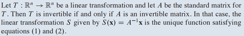 T가 invertible이면 A(standard matrix)도 invertible 합니다.