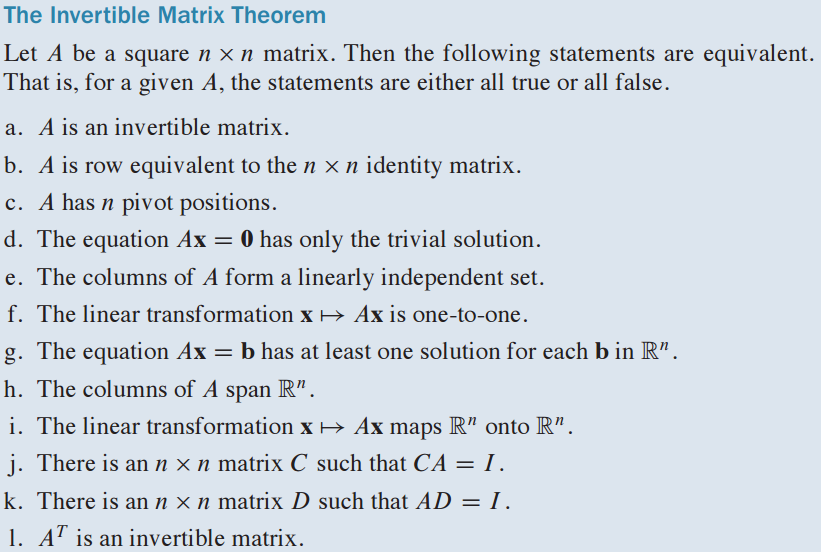 1. 이론 8. 역행렬 이론 - Theorem 8. The Invertible Matrix Theorem