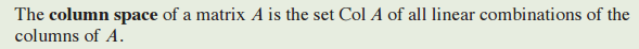 $R^m$공간에서 A = [$a_1, ... ,a_n$]으로 주어졌을 때 Col A = Span{$a_1, ..., a_n$}입니다.