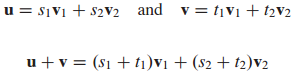 또한 임의의 벡터 u와 v를 선택했을 때 덧셈은 L에 존재하지 않으며