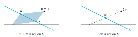 따라서 직선 L은 덧셈과 스칼라 곱에 닫혀있지 않게 됩니다.
