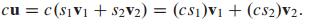 c. H에 있는 임의의 벡터 u에 스칼라 c와 곱한 값 cu이 H안에 있어야 합니다.