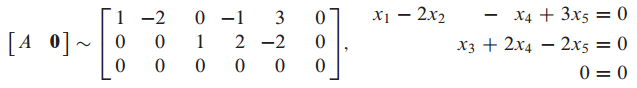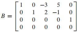 pivot position을 통해 $x_2, x_4, x_5$는 free variable이고 $x_1, x_3$은 basic variable임을 확인할 수 있습니다.