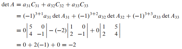 cofactor를 이용할 때 zero가 많은 row나 column을 기준으로 cofactor expansion을 이용하면 계산이 단순해집니다.