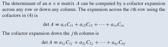 cofactor를 이용해서 determinant를 여러가지 형태로 표현할 수 있습니다.