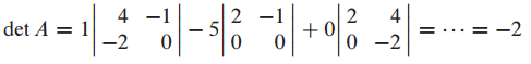 A가 주어졌을 때 det A를 cofactor expansion을 사용해서 계산하는 문제입니다.