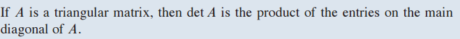 A가 삼각 행렬(triangular matrix)이면 det A는 A의 digonal term을 곱한 것입니다.
