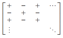 cofactor의 부호는 $(-1)^{i+j}$는 다음과 같은 규칙을 갖습니다.