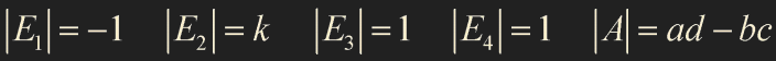 $E_4$는 first row에 k scaling 한 것을 second row에 더한 replacement를 의미합니다.