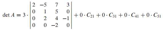 0이 많이 구성되어 있는 matrix는 다음과 같이 cofactor expansion을 사용할 수 있습니다.