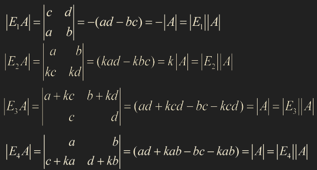 det EA 는 (det E)(det A)와 동일합니다.