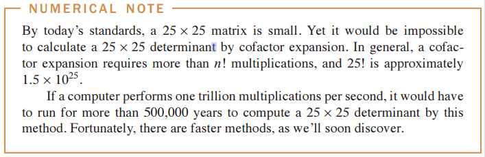 cofactor expansion으로 det를 구하는 연산은 n!이 소요되므로