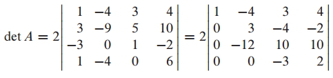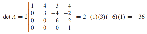 row reduction을 사용하여 echelon form으로 변환하면 det A를 쉽게 구할 수 있습니다.