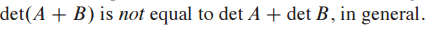 주의할 점은 det(A + B)는 det A + det B와 동일하지 않습니다.