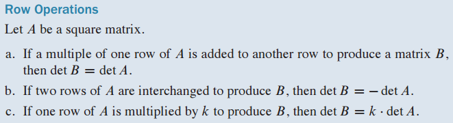 a. A의 하나의 row 곱이 다른 row에 더해져 B 행렬이 만들어지면 det B = det A 입니다.