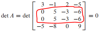 예를 들어 A가 다음과 같이 주어졌을 때 det A = 0이 나오므로 A는 not invertible matrix입니다.