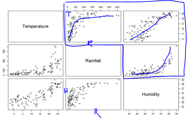 변수명을 중심으로 상하의 그림은 해당변수가 x축, 좌우의 그림은 y축임을 의미합니다.