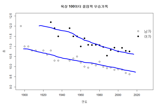 이처럼 산점도를 이용하면 연도와 우승기록간의 상관관계를 시각적으로 파악할 수 있습니다.