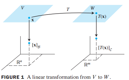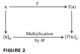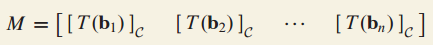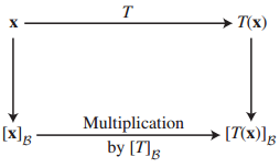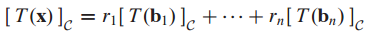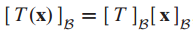 그러면 B basis로 표현되는 x의 coordinate vector $[x]_B$와 C basis로 표현되는 T(x)의 coordinate vector $[T(x)]_C$를 연결시키는 행렬이 있는지에 대한 궁금증이 생깁니다.