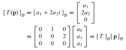 P(t) = $a_0 + a_1t + a_2t^2$ 에 대해서 $[T(p)]_B$는 다음과 같이 구할 수 있습니다.