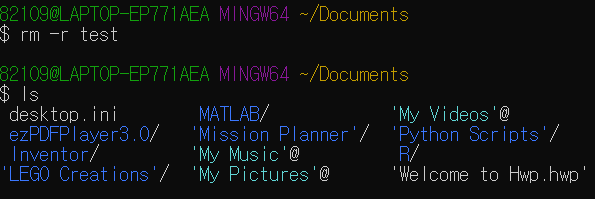rm 명령어로 test 디렉터리를 삭제해보겠습니다.