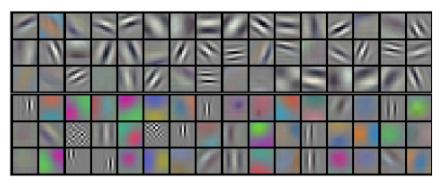 위 그림은 GPU 1, GPU 2 각각에서 학습된 kernel map 입니다. GPU 1에서는 색상과 관련 없는 정보를 학습하고 GPU 2는 색상과 관련된 정보를 학습하는 것을 확인할 수 있습니다. 이처럼 각각의 GPU는 독립적으로 학습된다고 나와있습니다.