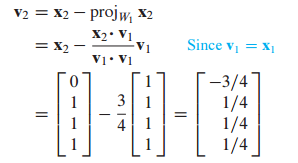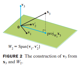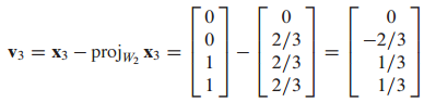 (3) $v_3$을 $x_3$에서 $x_3$을 2차원 W에 projection 한 것을 빼서 구할 수 있습니다.