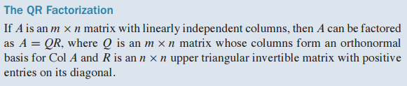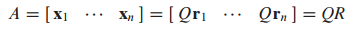 column이 선형 독립(linearly independent)인 mxn 크기의 행렬 A는 A=QR로 분해될 수 있습니다.